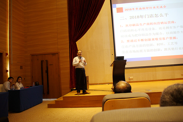 2018年3月5日,由天意有福主辦、大洋圖文、富麗圖快印聯(lián)合協(xié)辦的主題為“華南快印2018怎么搞交流會(huì)”在廣州市黃埔區(qū)保利假日酒店報(bào)告廳隆重舉行。天意有福副總經(jīng)理董祖明、王亦兵、吳楊文,富麗圖快印總經(jīng)理束永春,柯尼卡美能達(dá)梁曉麟,大洋圖文總經(jīng)理陳育明,悟空快印劉敏,六九快印曾中輝,點(diǎn)源科技總經(jīng)理何根山等13位嘉賓出席了此次會(huì)議。下午13點(diǎn)30分,柯尼卡美能達(dá)梁曉麟先生致辭,宣布會(huì)議開始,近兩百家快印企業(yè)代表針對(duì)行業(yè)趨勢、互聯(lián)網(wǎng)技術(shù)應(yīng)用以及未來發(fā)展方向等話題,結(jié)合本公司經(jīng)營策略展開了精彩的行業(yè)對(duì)話。